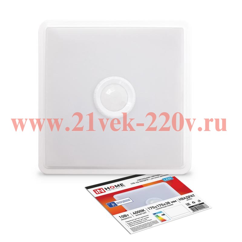Светильник светодиодный СПБ-2Д-КВАДРАТ 10Вт 230В 4000К 800лм 170мм с датчиком бел. IN HOME