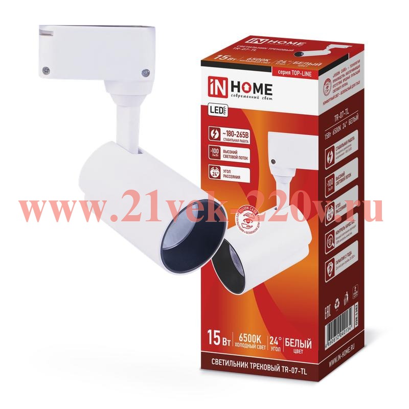 Светильник светодиодный TR-07-TL 15Вт 6500К 1500лм IP40 24град. TOP-LINE трековый бел. IN HOME