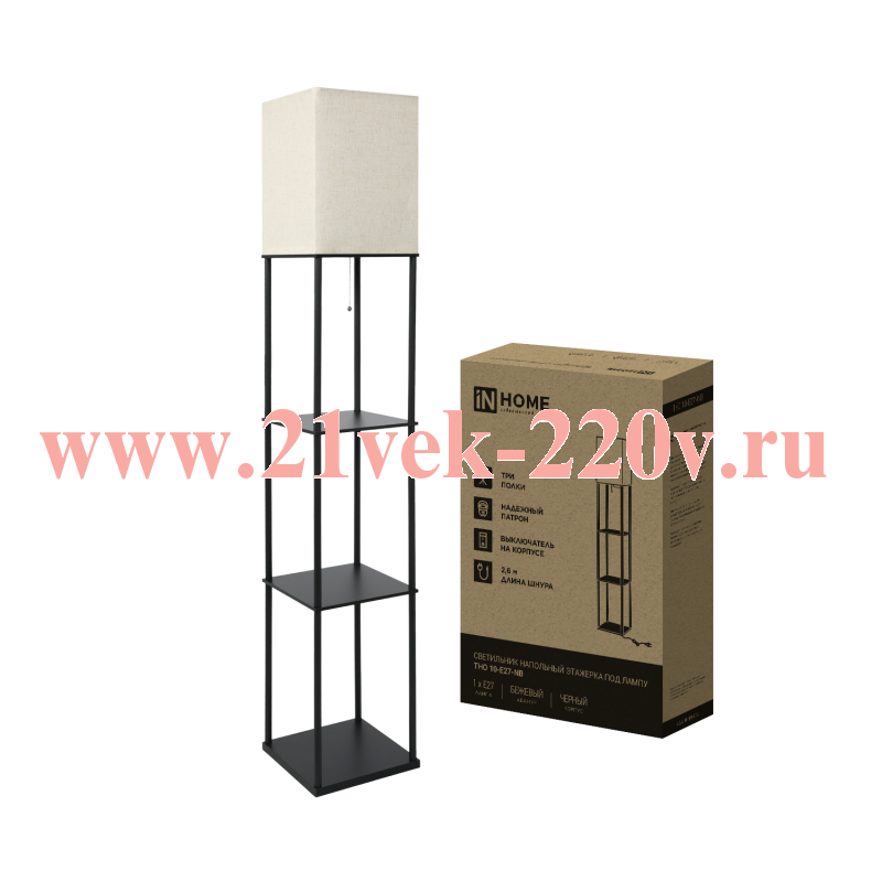 Светильник ТНО 10-Е27-NB этажерка напольн. под лампу абажур беж./корпус черн. IN HOME