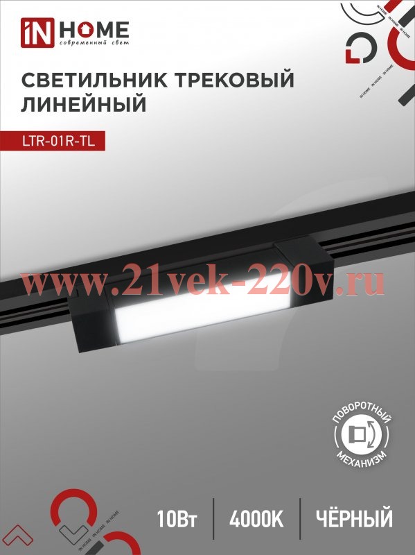 Светильник трековый линейный светодиодный поворотный LTR-01R-TL 10Вт 4000К 1000лм 210мм IP40 120град