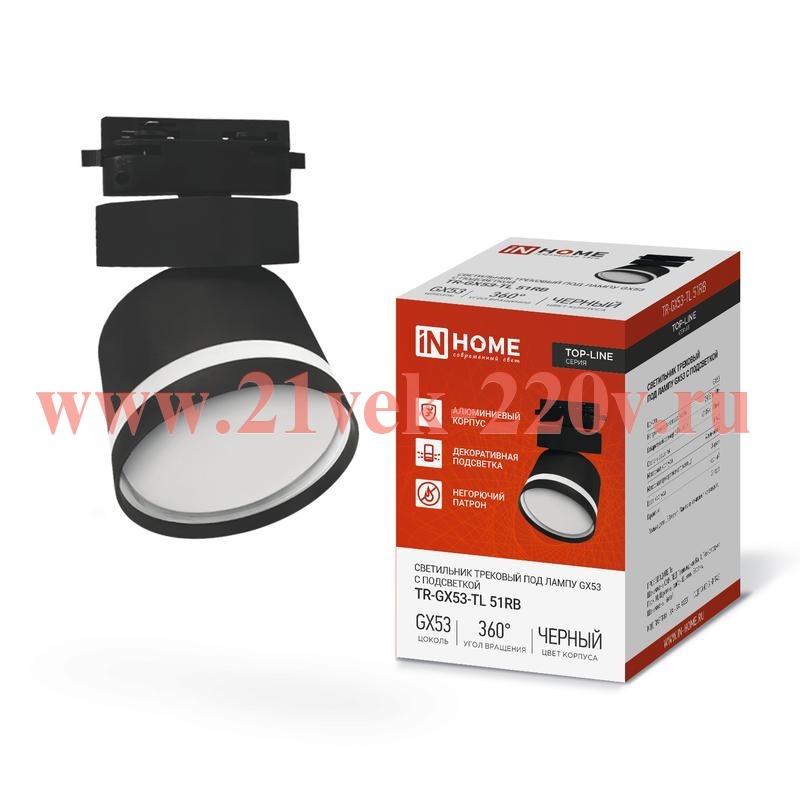 Светильник трековый под лампу с подсветкой TR-GX53-TL 51RB GX53 TOP-LINE черн. IN HOME