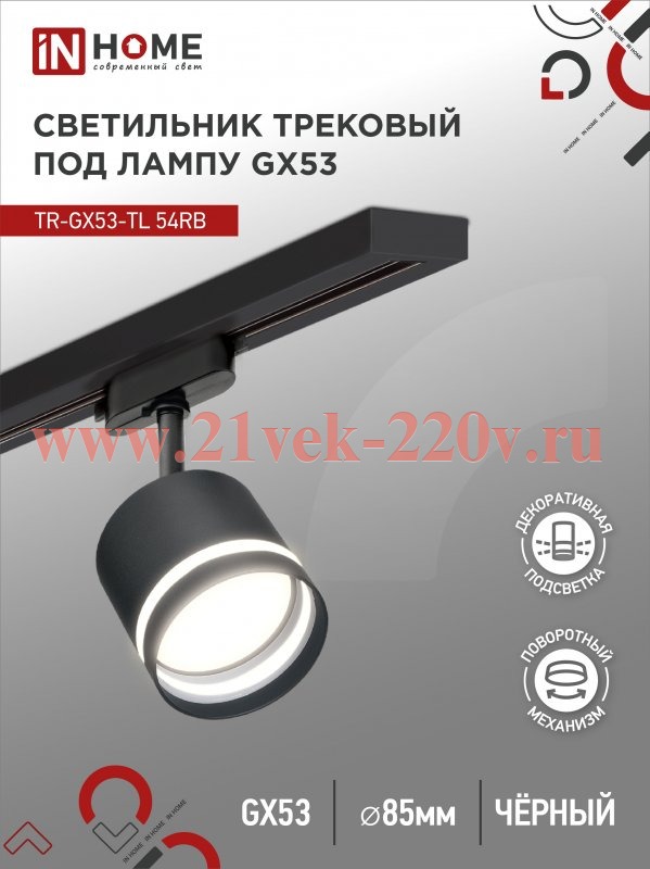 Светильник трековый под лампу с подсветкой TR-GX53-TL 54RB GX53 TOP-LINE черн. IN HOME