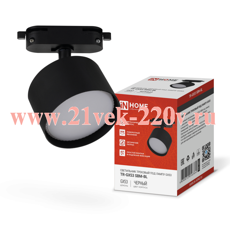 Светильник трековый TR-GX53 SBM-BL черн. IN HOME