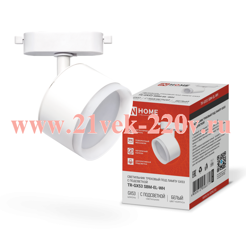 Светильник трековый TR-GX53 SBM-EL-WH с подсветкой бел. IN HOME