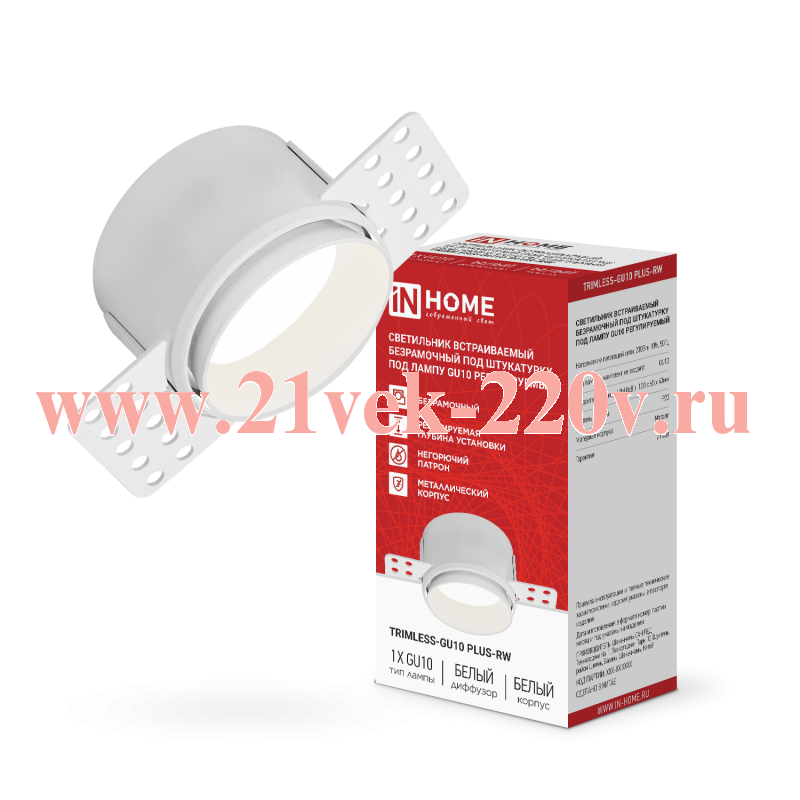 Встраиваемые светильники современное решение для организации освещения в жилых, коммерческих и общественных помещениях. Они идеально подходят для создания акцентного, общего или декоративного освещения, гармонично вписываясь в интерьер благодаря своей компактности и минималистичному дизайну. Светильник встраиваемый безрамочный под штукатурку TRIMLESS-GU10 PLUS-RW под лампу GU10 регулируемый белый IN HOME имеет компактный дизайн позволяет монтировать светильник в потолок, стены или мебель, не занимая полезную площадь. Цвет корпуса подчеркивает современный внешний вид, который впишется в любой интерьер. Мощность обеспечивает яркое освещение. Высокое качество сборки и сертификация по международным стандартам продукции бренда In Home гарантирует длительный срок службы, что снижает затраты на замену и обслуживание.