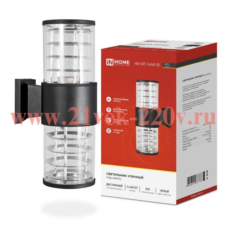 Светильник уличный двусторонний НБУ ART-2хA60-BL алюм. под лампу 2хA60 E27 230В CITY IP65 черн. IN HОМЕ