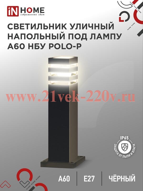 Светильник уличный напольный НБУ POLO-SP600-A60-BL алюминиевый под лампу A60 E27 600мм IP65 черн. IN НОМЕ