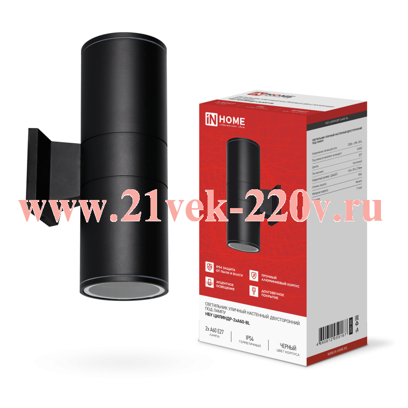 Светильник уличный настенный двусторонний НБУ ЦИЛИНДР-2хA60-BL алюминиевый IP54 черн. IN HOME