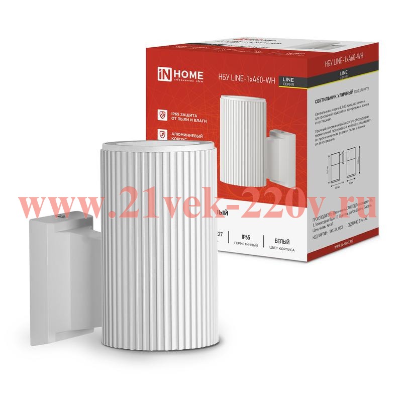 Светильник уличный односторонний НБУ LINE-1хA60-WH алюминиевый под 1хA60 E27 бел. IP65 IN HOME