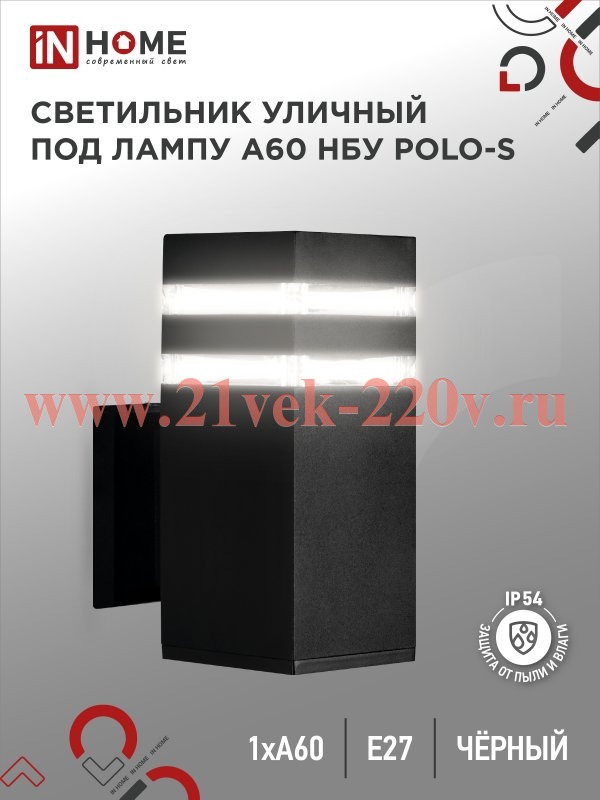 Светильник уличный односторонний НБУ POLO-S-1xA60-BL алюминиевый под 1хA60 E27 черн. IP65 IN HOME
