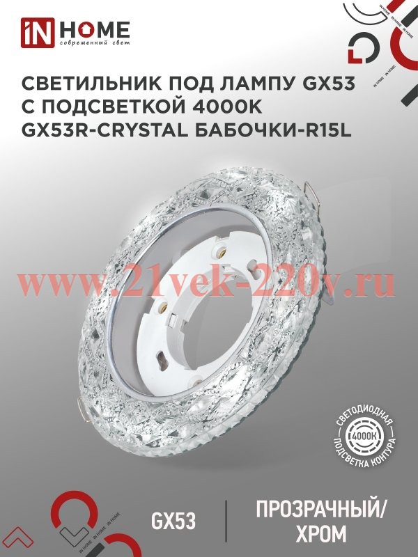 Светильник встраиваемый GX53R-crystal БАБОЧКИ-R15L с подсветкой 4К под GX53 прозрачн./хром IN HOME