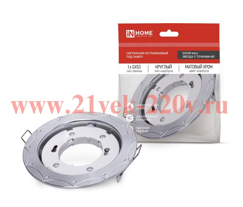 Светильник встраиваемый GX53R-deco ЗВЕЗДА С ТОЧКАМИ-MC под лампу GX53 матовый хром IN HOME