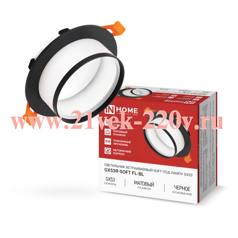 Светильник встраиваемый GX53R-SOFT FL-BL под GX53 матовый плафон 110х58мм черн. IN HOME