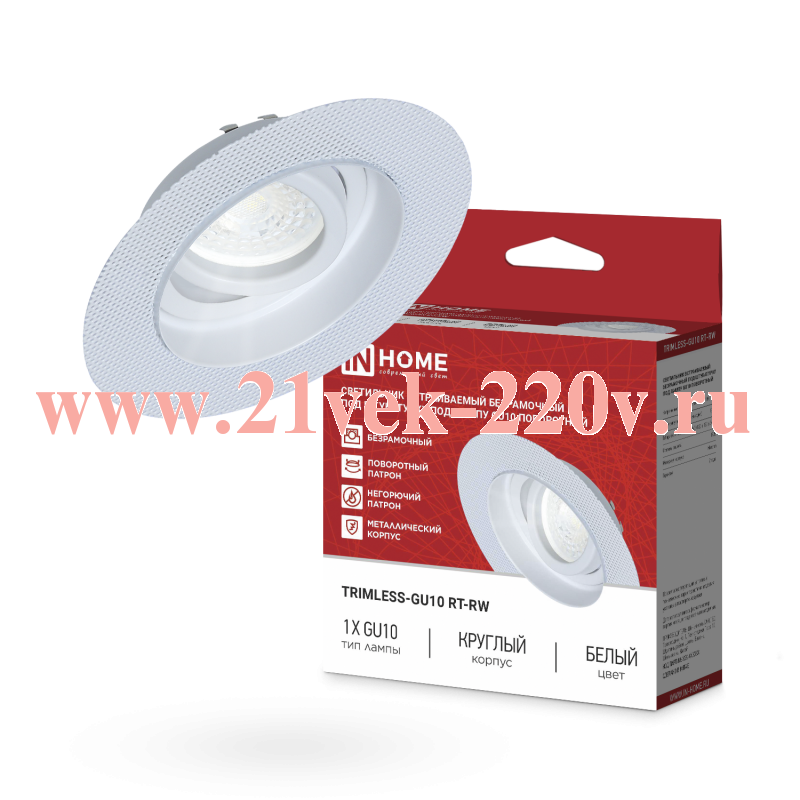 Светильник встраиваемый TRIMLESS-GU10 RT-RW под лампу GU10 пов. безрамочный под штукатурку бел. IN HОМЕ