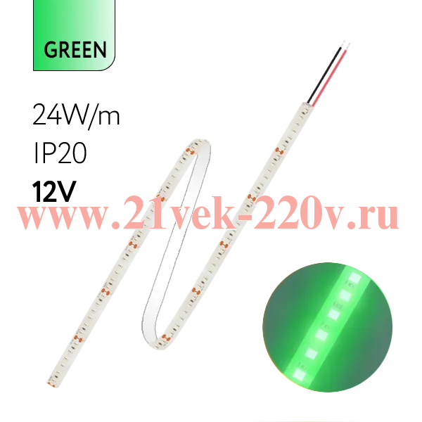 Лента светодиодная FOTON FL-Strip 2835- S120-G 24.0W/m GREEN DC-12V IP20 10*5000mm зеленого цвета.