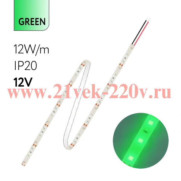 Лента светодиодная FOTON FL-Strip 2835-S60-G 12.0W/m GREEN DC-12V IP20 10*5000mm зелёного цвета.