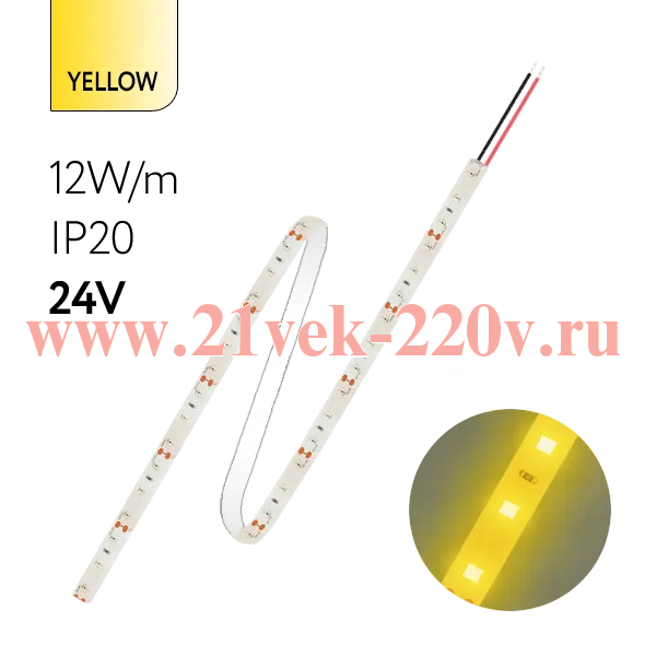Лента светодиодная FOTON FL-Strip 2835-S60-Y 12.0W/m YELLOW DC-24V IP20 10*5000mm желтого цвета.