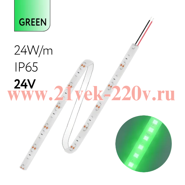 Герметичная лента светодиодная FOTON FL-Strip 2835-SW120-G 24.0W/m GREEN DC-24V IP65 10*5000mm зеленого цвета.