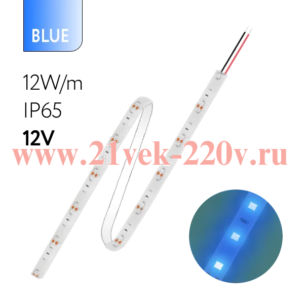 Герметичная лента светодиодная FOTON FL-Strip 2835- SW60-B 12.0W/m BLUE DC-12V IP65 10*5000mm синего цвета.