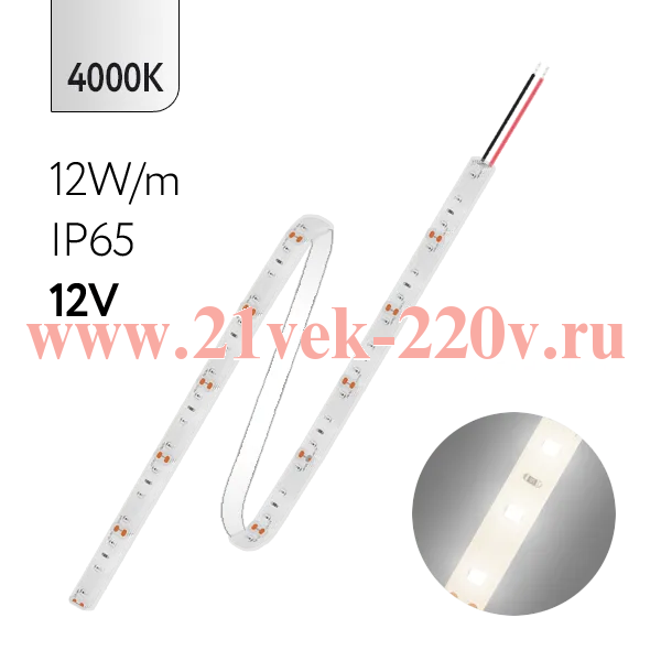 Лента светодиодная FOTON FL-Strip 2835-SW60-NW 12.0W/m 4000K DC-12V IP65 10*5000mm нейтрального белого света.