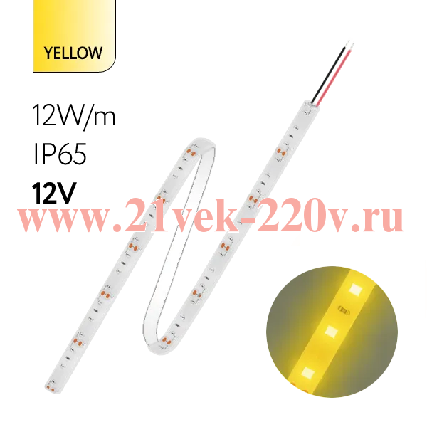Герметичная лента светодиодная FOTON FL-Strip 2835-SW60-Y 12.0W/m YELLOW DC-12V IP65 10*5000mm жёлтого цвета.