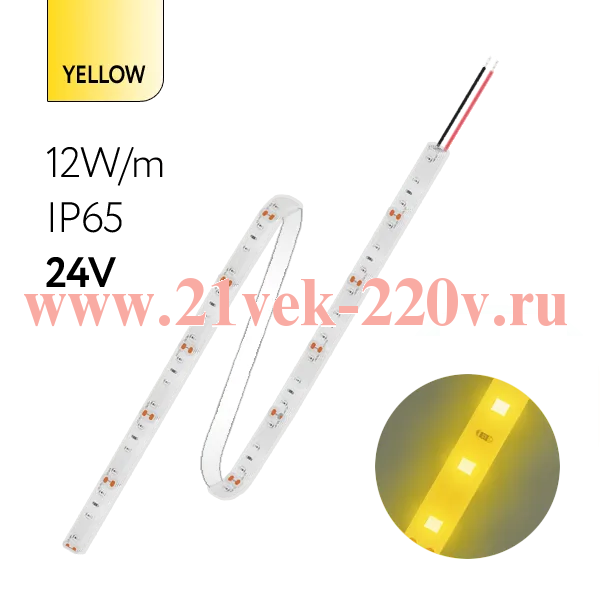 Герметичная лента светодиодная FOTON FL-Strip 2835-SW60-Y 12.0W/m YELLOW DC-24V IP65 10*5000mm желтого цвета.