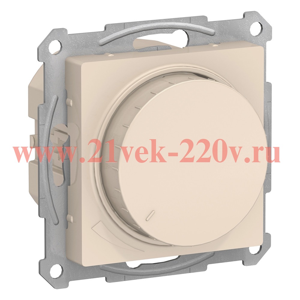 Электрический поворотно-нажимной регулятор света скрытой установки, мощностью до 400Вт, цвет бежевый, серии Атлас Дизайн. ATN000223