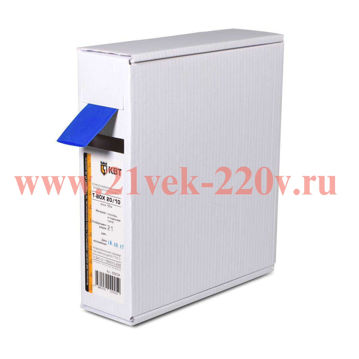 Трубка термоусадочная Т-BOX-10/5 синяя (10м) в компактной упаковке (Т-бокс) SKU, КВТ изоляция, маркировка и антикоррозионная защита электрических соединений, бандажирование кабелей и проводов диаметрами 5-10 мм.