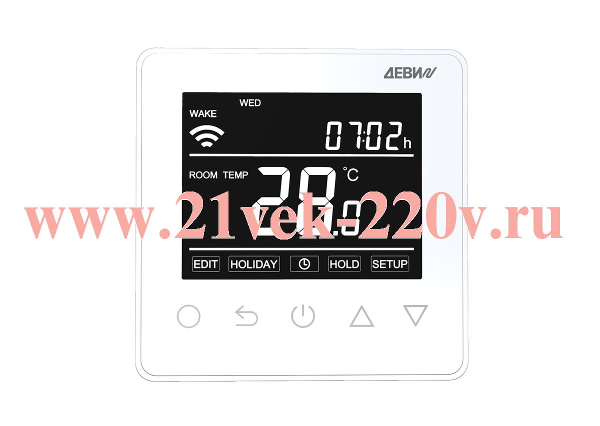 ДЕВИ Prime — это электронный программируемый терморегулятор со встроенным датчиком температуры воздуха и датчиком температуры пола на проводе с возможностью управления через Wi-Fi.