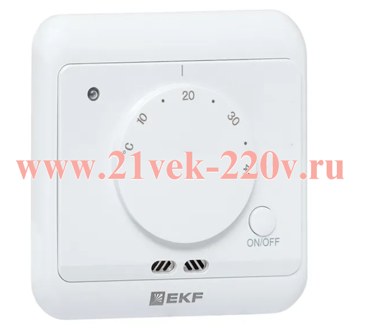 Термостат для теплых полов механический EKF (далее – терморегулятор) предназначен для автоматического управления кабельными системами электрического обогрева. Терморегулятор обеспечивает управление по двум датчикам температуры: пола и воздуха, как одновременно, так и по отдельности.
