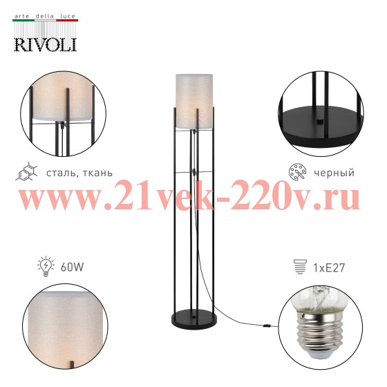Итальянский бренд Rivoli представляет напольные торшеры в разных стилях: классический Rivoli Aurelia (арт. D7041-501), лофт-торшер Rivoli Bianca (арт. D7041-502), торшер в стиле лофт-кантри Rivoli Doriana (арт. D7041-503). Напольный светильник Rivoli Bianca дополнит интерьеры в стиле лофт, классический, современная классика, минимализм, скандинавский. Торшер напольный высотой 1350 мм изготовлен из стали, абажур – из натуральной ткани нежного бежевого цвета. Плотная абажурная ткань торшера Rivoli Bianca не собирает пыль и устойчива к загрязнениям. Стальные ножки данного светильника на пол имеют реечный дизайн, соответствующий стилю лофт. Круглое металлическое основание обеспечивает устойчивость лампы напольной Bianca.
