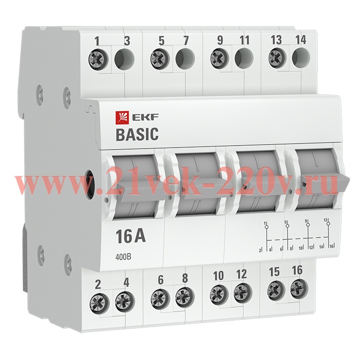 Трёхпозиционный переключатель 4P 63А EKF Basic. Трёхпозиционные переключатели являются механическими коммутационными аппаратами и применяются для переключения нагрузки или питающей линии, проведения тока в нормальном режиме и нечастого оперативного включения электрической цепи. Трёхпозиционные переключатели монтируются на DIN-рейку 35 мм. Прибор предназначен для коммутации алюминиевым и медным проводом. При этом не допускается одновременное присоединение к одному зажиму медных и алюминиевых проводников. Оперативные коммутации, т.е. процесс включения-выключения номинальных токов в отходящей цепи. Выключатели нагрузки AVN EKF AVERES используются для обеспечения объектов: гражданского жилого строительства; коммерческих строительных объектов; производственных площадок.