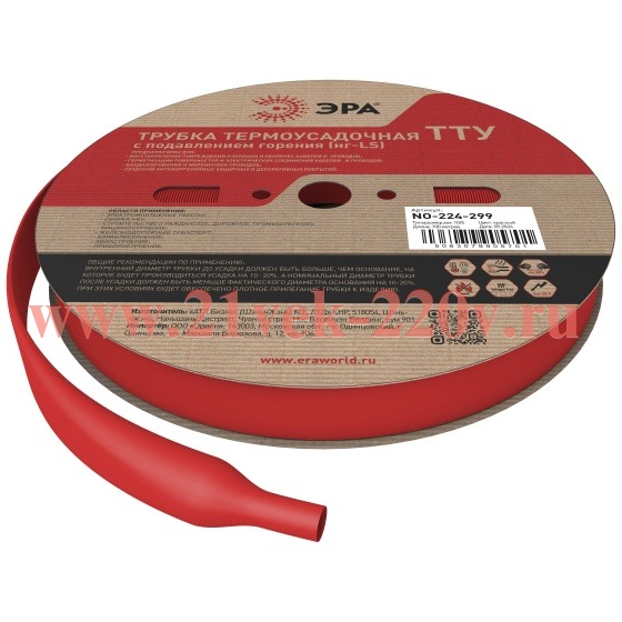 Термоусадочная трубка ЭРА NO-224-299 ТТУ нг-LS 10/5 красная рулон 100 м