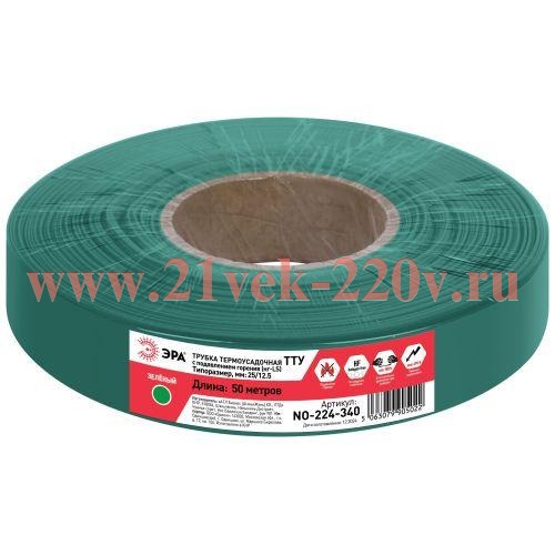 Термоусадочная трубка ЭРА NO-224-340 ТТУ нг-LS 25/12.5 зелёная рулон 50 м