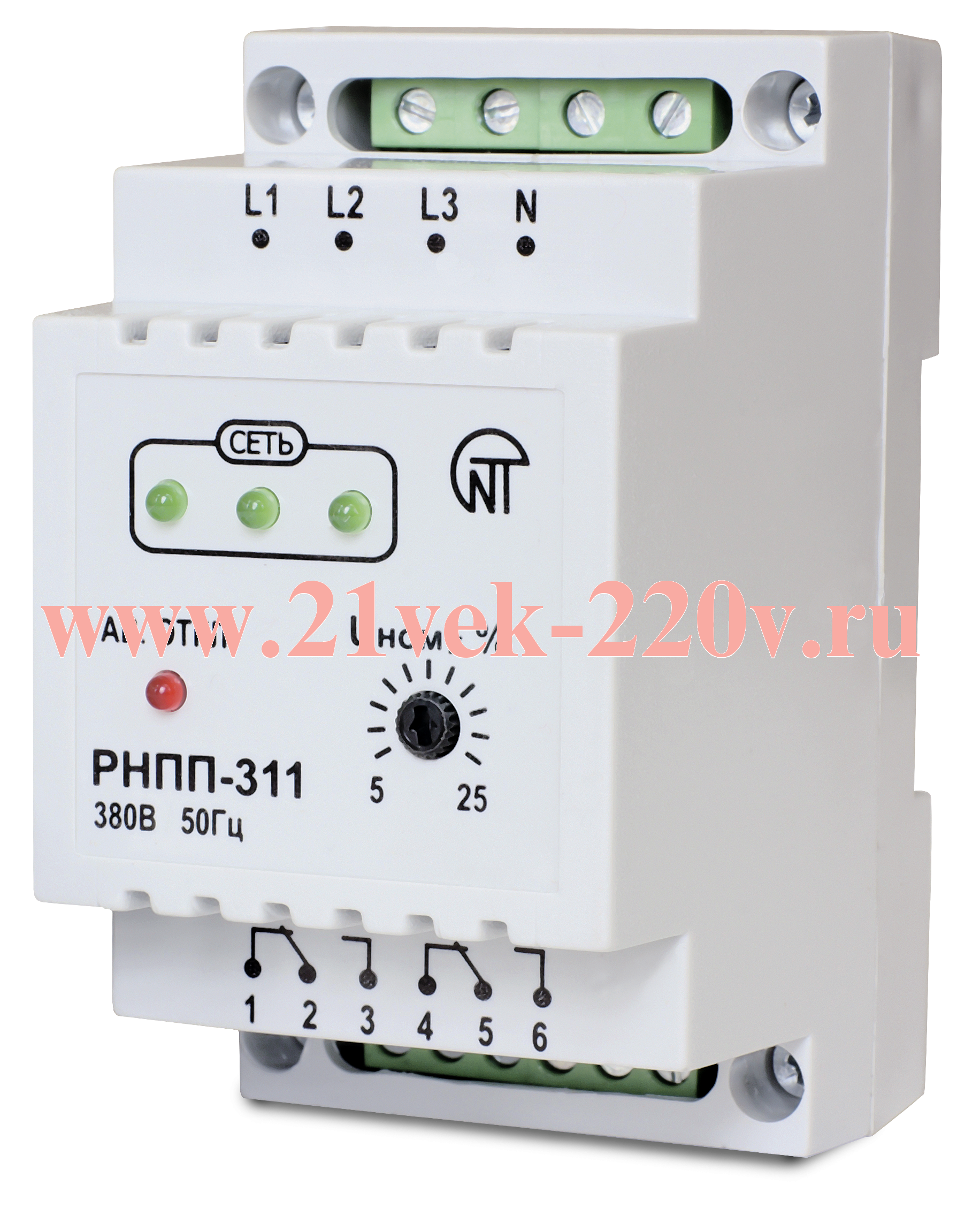Реле напряжения РНПП-311предназначено для отключения нагрузки 380 В/ 50 Гц при: недопустимых