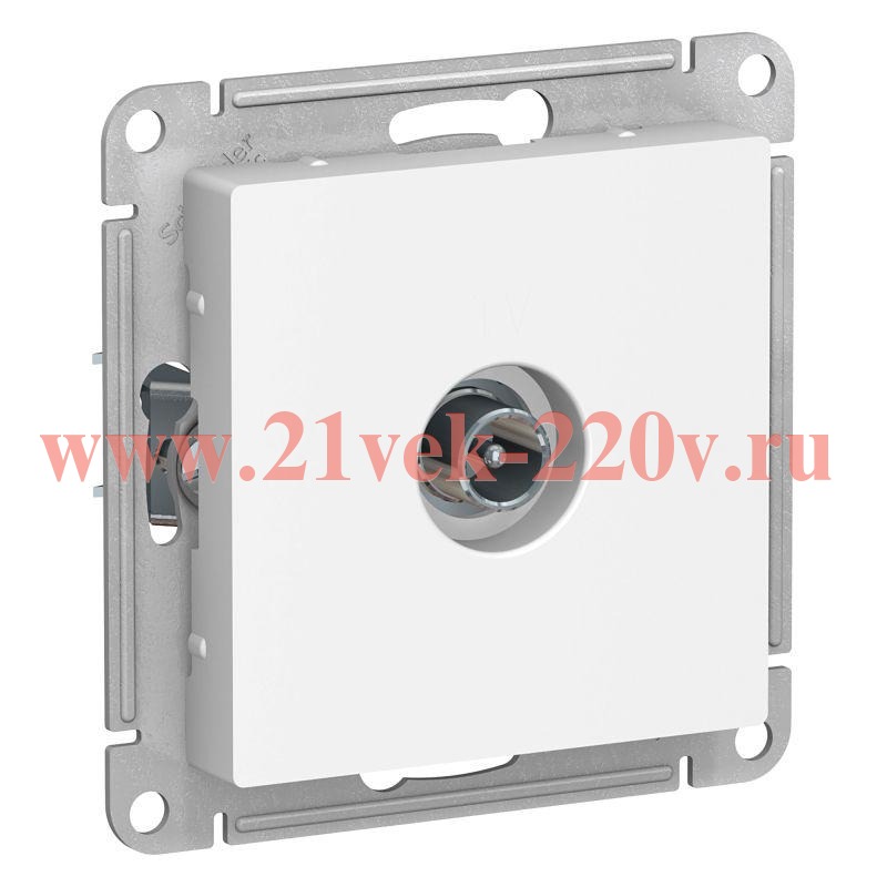Телевизионная оконечная розетка - электрический механизм малого тока, который относится к категории устройств для телекоммуникаций. TV розетка оконечная 1DB входит в серийную линейку изделий AtlasDesign компании Schneider Electric,она предназначена для завершения ряда аналогичных установок.Лицевая панель данной телевизионной розетки изготовлена в стиле классического дизайна - это четкие прямые линии и углы, образующие квадрат, в центре которого располагается разъем для подключения телевизионного приемника. Цвет глянцевой поверхности изделия белый, соответствующий строгости дизайнерского стиля.Значение электропроводности контактных групп TV розетки максимально увеличено с помощью добавления в производный сплав значительной доли серебра. Плотность и высокую степень надежности проводниковых контактов обеспечивают винтовые зажимы.Оконечная телевизионная розетка предусматривает встраиваемую установку в монолитные и каркасные стены помещений. Для постового монтажа конструкция розетки оснащена разжимными лапками и отверстиями, проделанными в пластине суппорта.Механизм Schneider Electric AtlasDesign (цвет белый) розетки TV оконечной 1DB предназначен для подключения телевизора к телевизионной сети.- Пластик с ионами серебра в белом цвете обеспечивает антибактериальный эффект.- Лицевые детали из качественного ABS-пластика, устойчивого к царапинам и УФ-излучению.- Оконечная розетка может устанавливаться как отдельно, так и в конце подключения «в линию».- Усиленные прямые монтажные лапки для лучшей фиксации механизма в монтажной коробке.
