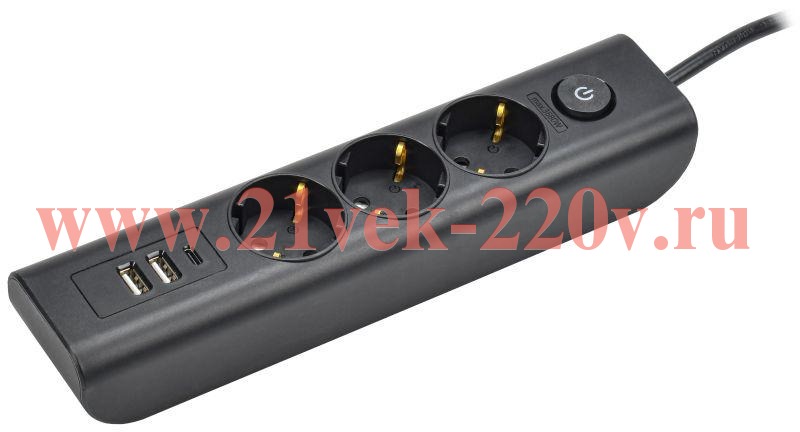 Удлинитель 3х2м с заземл. 16А 250В MODERN У03В с выкл. USBх3 (type-Aх2шт + type-Cх1шт) ПВС 3х1 черн.