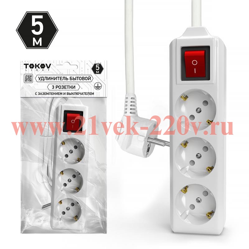 Удлинитель 3х5м с заземл. с выкл. 10А 3х1.5 TOKOV LIGHT TKL-C01-BU3-5-1.5-ZV