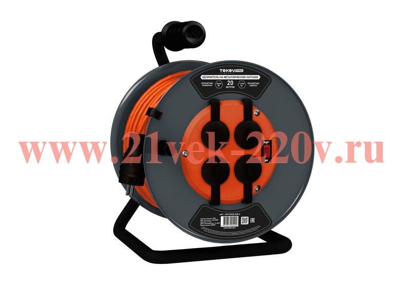 Удлинитель на метал. катушке 4х20м с заземл.16А IP44 ПВХ 3х2.5 с выкл. медь TOKOV ELECTRIC TKP-SK20-325-Z