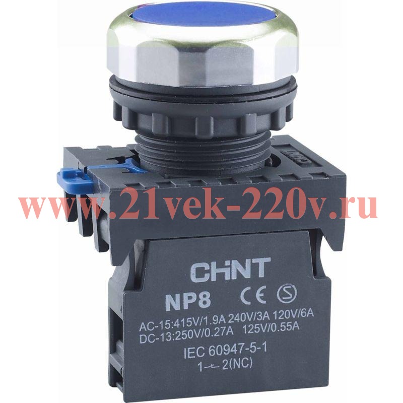 Кнопка управления NP8-30BN/6 без подсветки самовозв. 3НО IP65 (R) син. CHINT