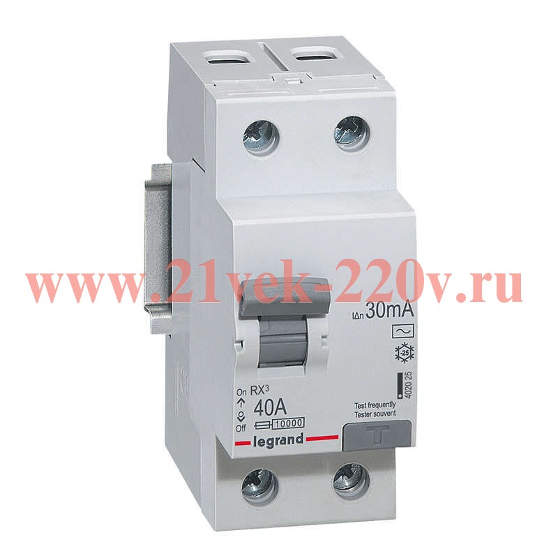 Двухполюсное УЗО ВДТ RX3 2п 40А 30мА тип AC Legrand