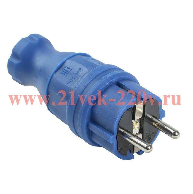 Каучуковая вилка прямая ИЭК Омега с заземляющим контактом, цвет синий