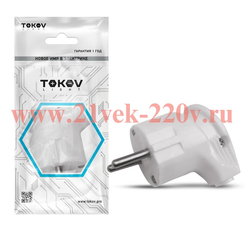 Вилка угловая 16А 250В с заземл. бел. TOKOV ELECTRIC TKL-PLUZ-C01