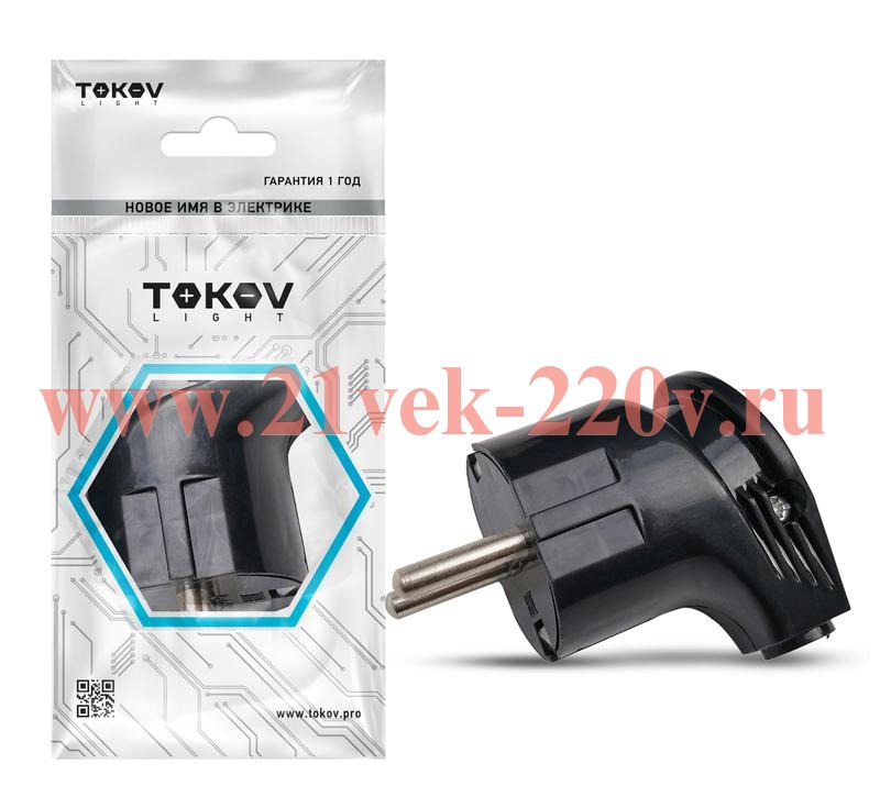 Вилка угловая 16А 250В с заземл. черн. TOKOV ELECTRIC TKL-PLUZ-C05