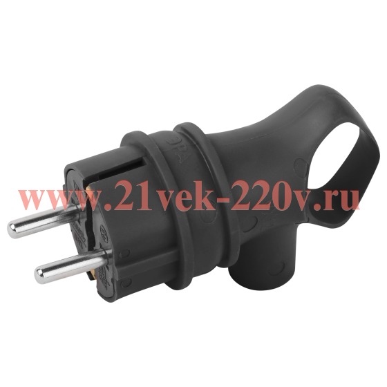 Вилка ЭРА VX12-B-IP44 каучуковая c заземлением 16А IP44 с кольцом угловая черная