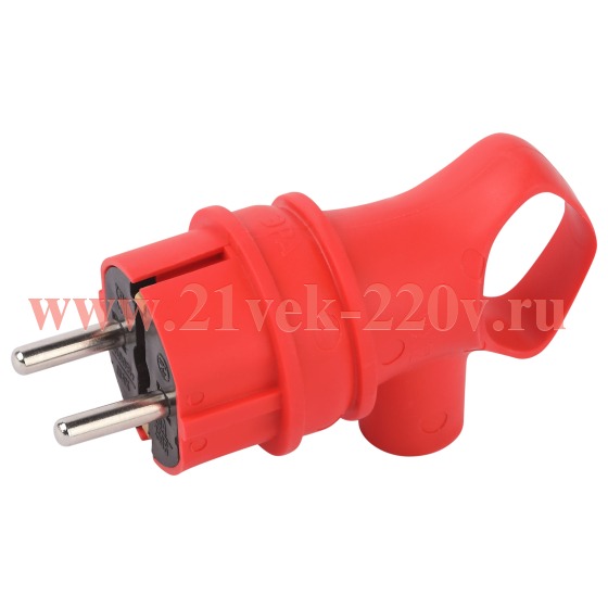 Вилка ЭРА VX12-R-IP44 каучуковая c заземлением 16А IP44 с кольцом угловая красная