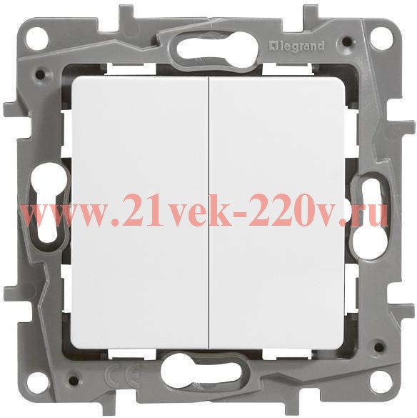 Двухклавишный выключатель (672202) фирмы Легранд (Legrand) серии Этика (Etika). Цвет - белый.