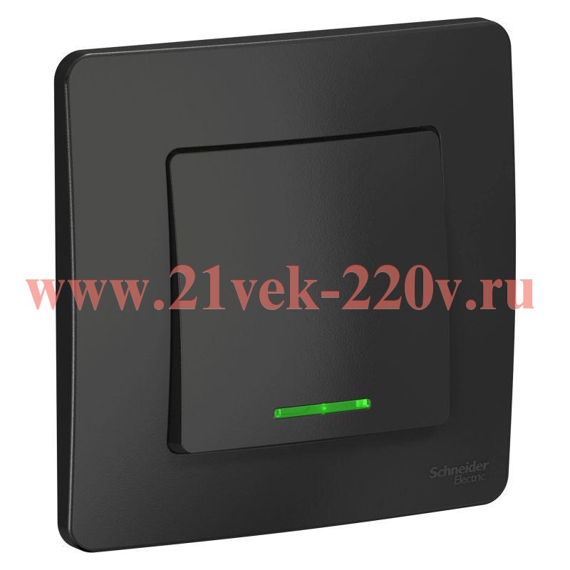 Одноклавишный выключатель скрытого монтажа (встраиваемый) с индикацией, Бланка Систем Электрик, угольного цвета