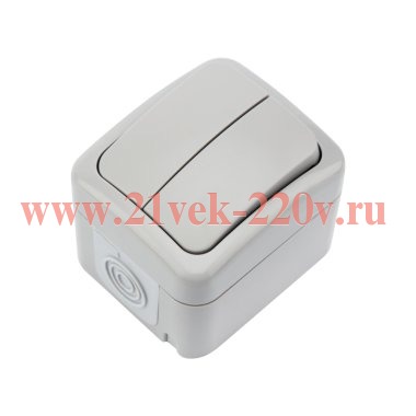 Выключатель двухклавишный Mini OG OG IP54, о/у, серый KRANZ предназначен для организации электроснабжения не только в сухом помещении, но и во влажной и пыльной среде.