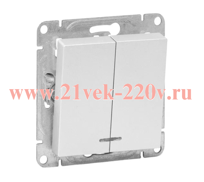 Выключатель 2-кл. СП Эпика с подсветкой механизм алюм. EKF